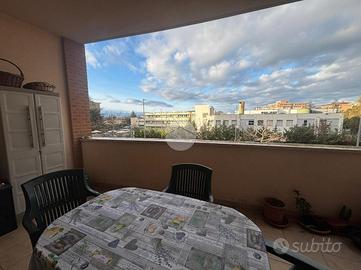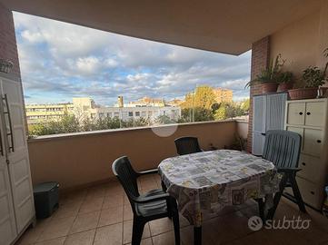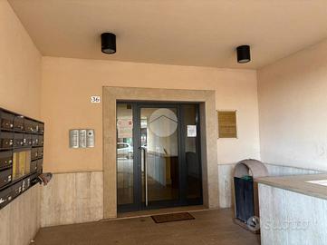 Viterbo Zona Riello In quartiere di recente costruzione e in via di sviluppo, l'agenzia immobiliare Tecnorete propone la vendita di un trilocale con due bagni e garage. Ci troviamo nel quartiere Riello, posizione strategica e servita dai migliori servizi, a due passi dal polo universitario e dal centro commerciale tuscia, zona giovanile e in continuo fermento. L'appartamento situato al secondo piano di una palazzina a cortina, sviluppa una metratura interna di 75 mq così disposta: ingresso sull'ampio salone, angolo cottura a vista e uscita sul terrazzo abitabile, ideale per pranzi e cene all'aperto, procedendo poi dal disimpegno troviamo i due bagni, uno con doccia e l'altro con vasca, entrambi finestrati, completano poi la zona notte una camera matrimoniale con sfogo esterno sul balconcino e una camera da letto doppia. Garage di proprietà di 17 mq al piano seminterrato, servito da ascensore L'immobile si presenta in ottime condizioni, pronto per essere abitato, attualmente locato ad euro 550 € al mese con regolare contratto, soluzione ideale anche per chi cerca un investimento sicuro o comunque come prima casa