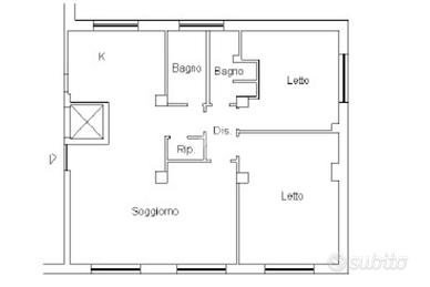 L'immobile è composto da doppio soggiorno, ripostiglio, cucina con secondo ripostglio, due camere da letto e due bagni finestrati entrambi con box doccia.