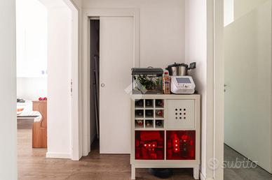 Entrando nell'appartamento si viene accolti da un piccolo ingresso che conduce subito nel luminosissimo soggiorno, un ambiente accogliente e centrale nella distribuzione della casa. Dal soggiorno si accede al disimpegno che accompagna in modo funzionale verso tutti gli altri locali: la cucina separata, comoda e ben organizzata, è arricchita da un pratico balcone che rappresenta uno spazio estremamente utile nella quotidianità; proseguendo troviamo la cameretta, la spaziosa camera da letto matrimoniale e il bagno, anch'esso finestrato e dotato di doccia.