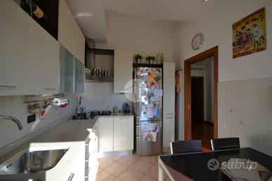 SPLENDIDO ULTIMO PIANO - In signorile contesto, tranquillo e ben servito dalla stazione ferroviaria, proponiamo in vendita un raffinato appartamento moderno, ben rifinito e curato nei minimi dettagli. Posto al secondo piano servito da ascensore, l'immobile si sviluppa su un unico livello con zona living ampia e luminosa, caratterizzata da un soffitto con travi inclinate e grandi porta-finestre che garantiscono una splendida luce naturale durante tutto il giorno. Il pavimento in parquet lucido conferisce calore ed eleganza all'ambiente. Anche l'illuminazione artificiale è ben studiata, con faretti incassati e luci a parete. La cucina è separata ed abitabile in affaccio sullo sfruttabile terrazzino in comune con il soggiorno. Nella zona giorno è presente un primo bagno finestrato, perfetto da utilizzare come servizio per gli ospiti, evitando l'accesso alla zona notte e garantendo così la massima privacy. Nell'antibagno sono presenti gli attacchi per la lavatrice, in un'area comoda e riservata. Dal disimpegno della zona notte, attrezzato con una pratica armadiatura/guardaroba, si accede a due camere da letto, entrambe con affaccio su un ampio balcone condiviso, provvisto di due utili ripostigli. Completa la zona notte il bagno padronale finestrato, dotato di vasca. L'appartamento gode inoltre di una tripla esposizione e risulta essere dotato di ogni comfort: riscaldamento autonomo, aria condizionata, zanzariere, tende da sole e impianto di antifurto. Una casa luminosissima, ordinata, e ben pensata, dove ogni angolo è sfruttato con intelligenza. Perfetta per chi ama un design moderno. A completare l'offerta un'utile cantina ed un ampio box auto inclusi nel prezzo.