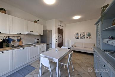 Appartamento inserito in un contesto condominiale curato ed elegante, situato in posizione strategica, comoda per raggiungere a piedi sia la stazione ferroviaria che il centro del paese. Posto al secondo piano e servito da ascensore, l'immobile si apre su una moderna e accogliente zona living con accesso al comodo balcone, affacciato su una piacevole e tranquilla piazzetta interna al complesso. Il corridoio, il cui spazio consente di inserire un'armadiatura ad uso guardaroba, conduce alla zona notte composta dalla cameretta, dal bagno con vasca e dalla camera matrimoniale dotata di doppia esposizione che la rende luminosa. Il riscaldamento è autonomo e le spese condominiali sono contenute. Completa la proprietà un box auto proposto a 19000€. Libero a breve.