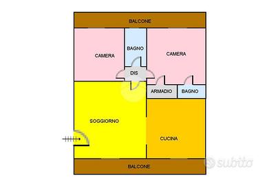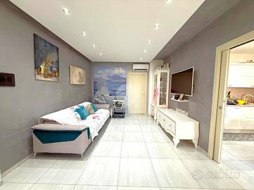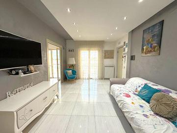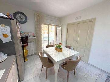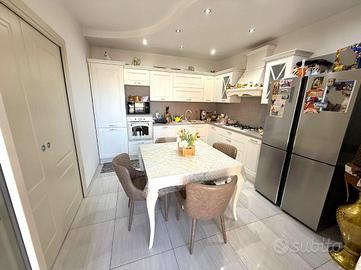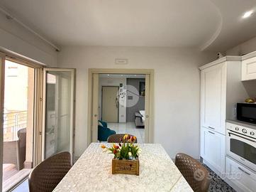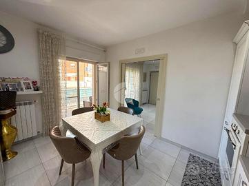 All'ingresso vi è un ampio salone diviso, tramite porte a scrigno, dalla cucina abitabile. La zona giorno ha accesso al primo balcone con ripostiglio esterno.