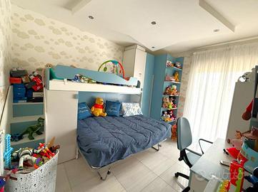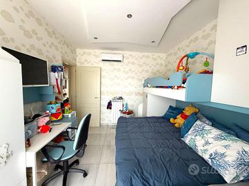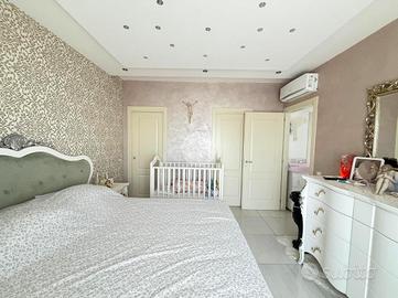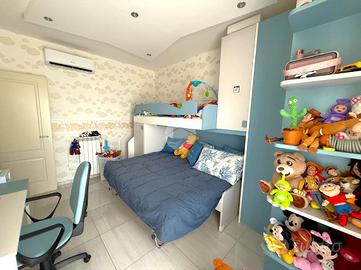 Il disimpegno conduce alla camera da letto matrimoniale con bagno in camera e cabina armadio, alla camera da letto per ragazzi e al bagno padronale. La zona notte ha accesso al secondo balcone con affaccio libero.