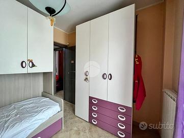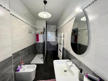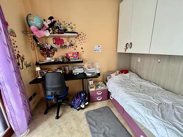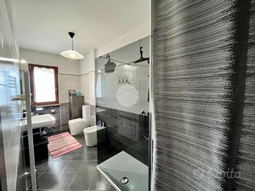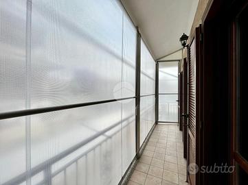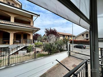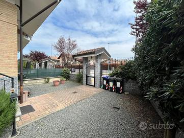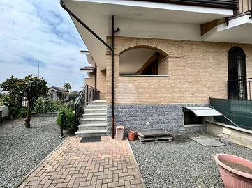 In zona residenziale, denominata ' zona San Grato' comoda a tutti i principali servizi, proponiamo in vendita ampio trilocale edificato nel 2013; Caratterizzato da ingresso indipendente e cortile privato. Tramite porta blindata accediamo all'ingresso caratterizzato da luminoso soggiorno, bagno con doccia e zona completa di attacchi per la lavatrice, camera da letto matrimoniale e cameretta, entrambe con accesso diretto tramite porta finestra, al balcone completo di tende doppio rullo invernali. Una pratica scala interna conduce al piano interrato, dove troviamo un'ampia cucina abitabile, un bagno di servizio, un comodo ripostiglio e il box auto. La soluzione inoltre è dotata di infissi in legno in doppio vetro con zanzariere e antifurto perimetrale presente in tutta la casa, box auto incluso. Il riscaldamento è autonomo e le spese di gestione sono contenute.