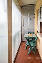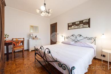 IMMOBILE ATTUALMENTE IN TRATTATIVA In zona residenziale, a pochi passi dal centro e comodo a tutti i principali servizi, l'appartamento si trova al quarto e ultimo piano di una palazzina in paramano e dotata di ascensore. Dall'ingresso si accede alla cucina abitabile comodamente fruibile e molto luminosa, dotata di finestra e porta finestra con sfogo sul balcone munito di tenda veranda. La zona notte è composta da due camere da letto entrambe matrimoniali. Il bagno già ristrutturato è con vasca. L'immobile presenta con gli infissi allo stato originale e il riscaldamento è centralizzato con termovalvole. Completano la proprietà la cantina e il posto auto. La palazzina è dotata di pannelli fotovoltaici per l'energia elettrica degli spazi comuni.