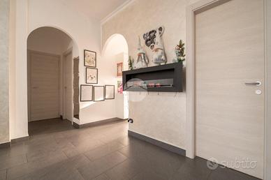 Volvera. In zona centrale, comoda a tutti i principali servizi di prima necessità, l'appartamento si trova al primo piano di una palazzina in intonaco in cui sono già stati effettuati i lavori di rifacimento della facciata con l'aggiunta del cappotto termico ai lati del condominino. L'appartamento è stato recentemente oggetto di una ristrutturazione completa che ha previsto il rifacimento della pavimentazione, la sostituzione degli infissi interni ed esterni (finestre, porte interne e blindato) e la rivisitazione dell'impianto elettrico e idraulico. Dall'ingresso si accede all'ampio soggiorno living con sfogo, tramite porta finestra, su un terrazzino verandato esposto a sud. La cucina semi-abitabile è adiacente al soggiorno, e ha accesso su un secondo balcone. La zona notte è composta da due camere da letto, entrambe matrimoniali e finestrate. Il bagno è dotato di box doccia ed è anch'esso finestrato. È inoltre presente un comodo ripostiglio. Il riscaldamento è centralizzato con termovalvole. Completa la proprietà la cantina.