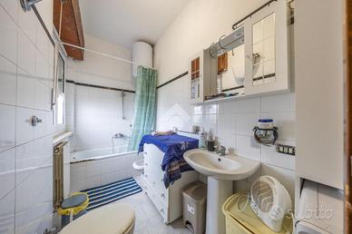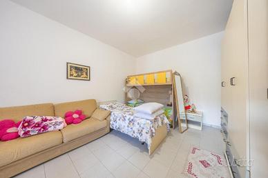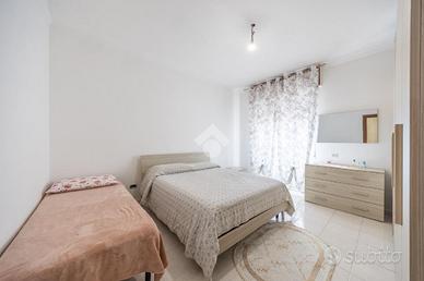 * Il secondo appartamento al primo piano è composto da un soggiorno con angolo cottura, due camere matrimoniali (entrambe con accesso al balcone esterno) e un bagno finestrato con vasca.