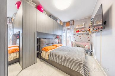 * Il primo appartamento al primo piano si distingue per un ampio e luminoso salone con angolo cottura, una cameretta, una camera matrimoniale con accesso al balcone esterno e un bagno finestrato con doccia.
