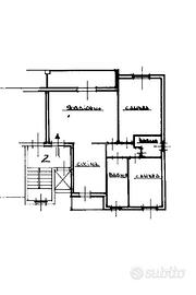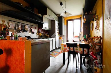 La cucina è dotata di un pratico balcone, le due camere da letto sono spaziose e ben illuminate, mentre i due bagni finestrati offrono funzionalità e comfort.