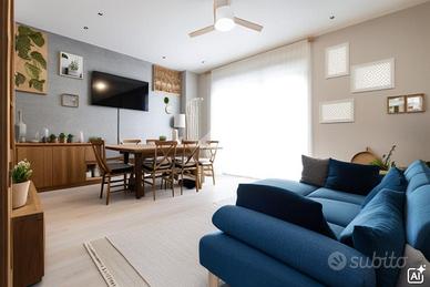L'immobile si apre su un accogliente ingresso con comodo ripostiglio, perfetto per organizzare al meglio gli spazi. La zona giorno è composta da un ampio soggiorno con balcone (dotato di zanzariera) e da una cucina abitabile con secondo balcone, perfetta per i momenti in famiglia.