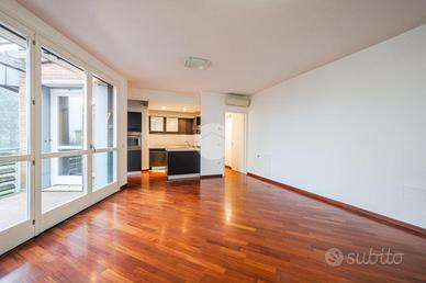 RIALE: In complesso residenziale realizzato nel 2005, proponiamo appartamento su due livelli, in ottimo stato, al secondo ed ultimo piano con ascensore. Atrio d'ingresso arredabile, salone con cucina a vista e accesso al terrazzo, disimpegno zona notte, due stanze con accesso ad un secondo terrazzino e due bagni. Tramite una comoda scala di collegamento si raggiunge il soppalco dal quale si accede al lastrico solare. Possibilità di un'autorimessa al piano interrato. L'immobile è dotato di riscaldamento a pavimento, impianto di aria condizionata e di serramenti in legno col doppio vetro. Per ulteriori informazioni e dettagli siamo disponibili dalle 09:00 alle 13:00 e dalle 15:00 alle 20:00 presso la nostra sede in Via Roma n°5 Zola Predosa. Per fissare una visita all'immobile ci contatti allo