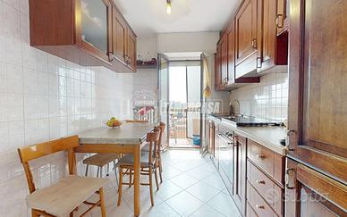 Al sesto piano di un contesto condominiale servito da ascensore, proponiamo un ampio trilocale ben tenuto, ideale per chi cerca spazi comodi in una zona servita e tranquilla. L'ingresso conduce a un soggiorno accogliente, da cui si sviluppa un disimpegno che dà accesso alla cucina abitabile, dotata di balcone, perfetta per pranzi e cene in famiglia. La zona notte è composta da due camere di generose dimensioni: la matrimoniale affaccia su un secondo balcone collegato anche al soggiorno, regalando aria e luce naturale. La seconda camera, ampia, si adatta perfettamente a uso cameretta o studio. Il bagno, finestrato, si presenta in buone condizioni e con spazi funzionali. Grazie al piano alto e all'esposizione libera, l'appartamento gode di ottima luminosità per tutta la giornata. A completare la soluzione, una cantina di proprietà. POSSIBILITA' DI BOX A PARTE : 30.000 Una casa solida, ben distribuita e con ottimo potenziale anche in ottica di personalizzazione.