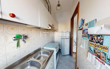 Ingresso su disimpegno, tinello con uscita sul primo terrazzino, cucinino, due camere da letto entrambi con affaccio sul balcone, sevizio e ripostiglio.