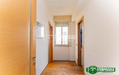 In contesto residenziale curato, dotato di servizio di portineria e ampio parco condominiale, proponiamo in vendita un luminoso trilocale con cucina a vista e balcone. L'appartamento, situato al quarto piano di uno stabile anni '60 servito da ascensore e riscaldamento centralizzato, è così composto: ingresso, spazioso soggiorno con cucina a vista dal quale si accede alla generosa balconata, due camere da letto di ampia metratura e bagno finestrato. L'immobile è dotato di porta blindata, infissi con doppi vetri e aria condizionata. La doppia esposizione contrapposta garantisce un'eccellente luminosità e una piacevole ventilazione naturale in tutti gli ambienti. Punto di forza della soluzione sono la tranquillità del contesto, le perfette condizioni dello stabile e la razionale distribuzione degli spazi, che consente di sfruttare al meglio ogni ambiente. La zona è ottimamente servita, in particolare nelle immediate vicinanze sono presenti scuole, supermercati, farmacie, bar, ristoranti e negozi di ogni genere; a soli 500 metri è presente l'autobus n°67, che collega rapidamente alla metropolitana Bisceglie (linea M1) in sole due fermate. Completa la proprietà una cantina. - Classe: F - IPE: 214.21 kWh/mq anno