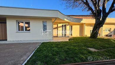 - ingresso su ampio soggiorno living con cucina a vista e ampia vetrata con uscita su giardino privato