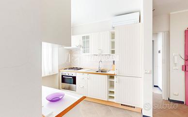 L'immobile è composto da ingresso che affaccia direttamente sulla cucina abitabile e sulla zona giorno con accesso ad un primo balcone, un spazio versatile sfruttabile come locale hobby o studio, piccolo disimpegno, bagno finestrato con doccia e camera da letto matrimoniale con accesso ad un secondo balcone privato.