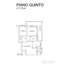 Ingresso su ampio soggiorno con accesso a spazioso terrazzo angolare e cucina semi-abitabile, disimpegno su zona notte dove troviamo un bagno finestrato, una camera matrimoniale, una camerata ed un comodo ripostiglio.
