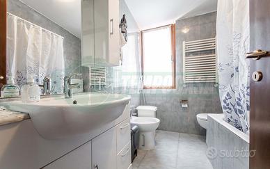 Sempre sul primo livello troviamo un bagno finestrato, completo di vasca da bagno comoda e funzionale, oltre a sanitari moderni e finiture eleganti.