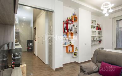 L'immobile si apre su un comodo disimpegno che porta al cucinotto, separato dalla zona giorno da una porta a vetro in modo da sfruttare al meglio gli spazi a disposizione. La zona living comprende anche un balconcino che si affaccia sull'interno del cortile, l'ideale per uno sfogo esterno in un contesto di assoluta tranquillità.