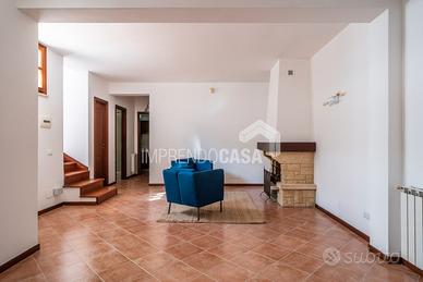 La casa è composta da: ingresso su ampia zona living con camino, distribuita tra zona relax, zona pranzo e zona salone, cucina, 2 camere da letto, servizio, ripostiglio. Peg.