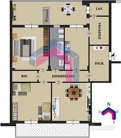 L'appartamento è dotato di pavimentazione in marmo e ceramica, porta d'ingresso blindata, infissi in legno douglas.