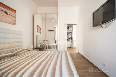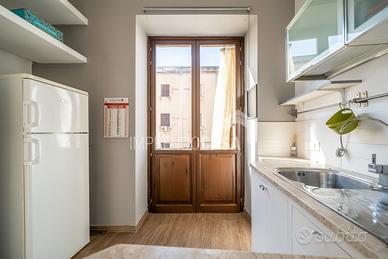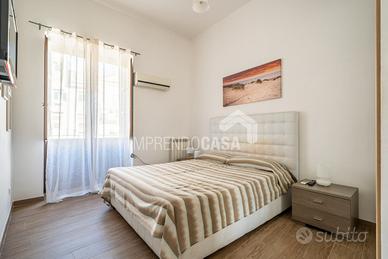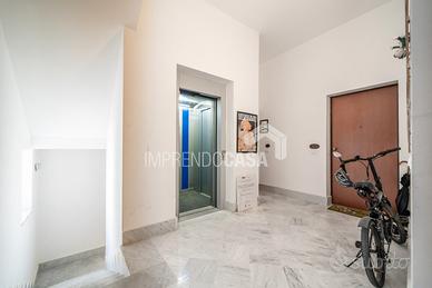 Composto da: Ingresso su zona giorno con angolo cottura, camera da letto, cameretta, servizio, armadio a muro, scala interna che porta ad una stanza da bagno finestrata con vasca e pavimentazione in ceramica a scacchi bianca e nera, 5 balconi!