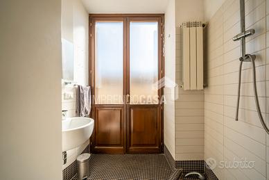 Composto da: Ingresso su zona giorno con angolo cottura, camera da letto, cameretta, servizio, armadio a muro, scala interna che porta ad una stanza da bagno finestrata con vasca e pavimentazione in ceramica a scacchi bianca e nera, 5 balconi!