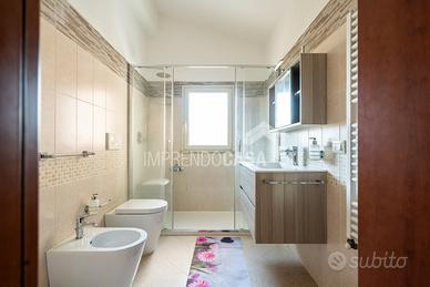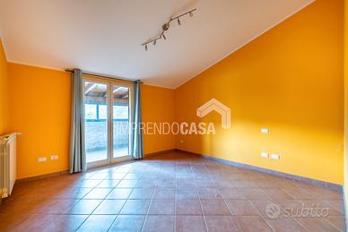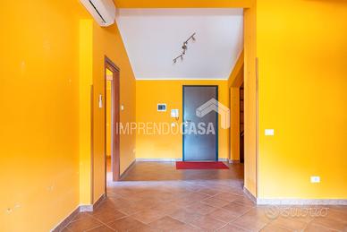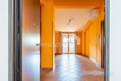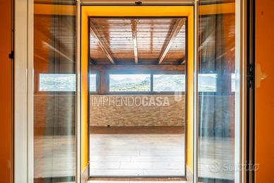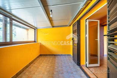 La disposizione interna comprende un ingresso su salone-cucina, camera matrimoniale, cameretta, un bagno con ampio box doccia in vetro, 2 terrazzi verandati di 10mq e 20mq.