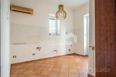 L'appartamento è così composto: ingresso su disimpegno, salone, soggiorno, cucina, camera da letto, due bagni, portico e ampia zona esterna.