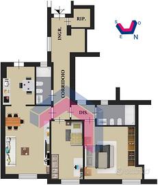 Composto da: Ingresso su corridoio finestrato, soggiorno con cucina attigua, camera da letto, cameretta, doppi servizi finestrati, ripostiglio.
