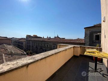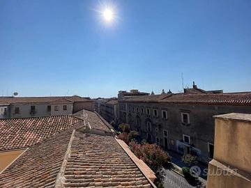 Rif:(123016641) - Nel cuore del centro storico di Catania, tra la via Manzoni e l'incantevole via Crociferi, all'interno di un elegante palazzo d'epoca integralmente ristrutturato e servito da ascensore, proponiamo in locazione un raffinato appartamento di pregio di 3 vani, con ingresso da via Antonino di Sangiuliano. Posto al terzo piano e sviluppato su una superficie di circa 125 mq, l'immobile accoglie con un'ampia sala d'ingresso che introduce alla cucina abitabile, completa di lavanderia e bagno. Da qui si apre l'accesso al salone angolare, luminosissimo, con affacci sia su strada che su un terrazzino a livello, dal quale si gode di un'incantevole vista aperta sui tetti e sulle architetture del centro storico catanese. La zona notte ospita una spaziosa camera matrimoniale con cabina armadio e angolo studio, anch'essa con affaccio sulla via di Sangiuliano. L'appartamento si presenta in condizioni impeccabili, con finiture di alto livello: pavimenti in parquet a tappeto, infissi in PVC a taglio termico con triplo vetro, impianti a norma, riscaldamento autonomo e climatizzazione. Viene locato completamente arredato con arredi di qualità, pronto per essere abitato. La doppia esposizione sud-est garantisce ambienti soleggiati per l'intero arco della giornata. La proprietà dispone inoltre di un comodo posto auto all'interno della corte condominiale. La posizione, in un contesto signorile e ricco di servizi, rende questa residenza la soluzione ideale per chi desidera vivere l'autenticità e l'eleganza del centro storico catanese senza rinunciare al comfort moderno. - Classe: C - IPE: 106.51 kWh/mq anno