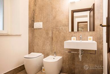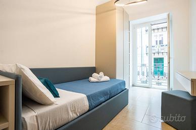 L'appartamento si apre su un ingresso con disimpegno, che conduce a una luminosa e spaziosa zona living, dotata di un balcone che offre una splendida vista sul suggestivo Corso Vittorio Emanuele. La cucina abitabile, completamente attrezzata, è ideale per chi ama cucinare e accogliere ospiti. La zona notte comprende una elegante camera matrimoniale, arredata con mobili di design, e una cameretta, anch'essa con balcone che affaccia su Corso Vittorio Emanuele, perfetta come stanza per ospiti o studio. Sono presenti due bagni, uno dei quali è completo di doccia, entrambi caratterizzati da finiture moderne e di qualità.