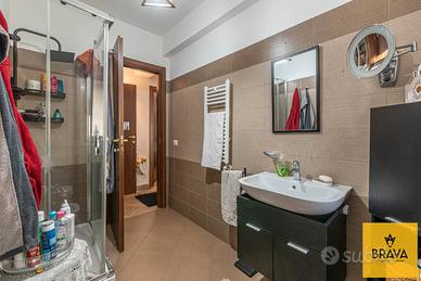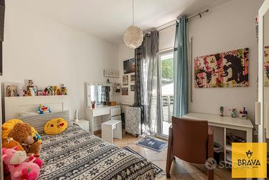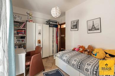 La disposizione interna include una camera da letto matrimoniali, un'ampia cameretta e due bagni completi di doccia, garantendo così comfort e praticità per gli abitanti. La luminosità dell'abitazione è notevole grazie alle finestre e ai balconi che consentono una buona illuminazione naturale, rendendo gli ambienti ancora più accoglienti.