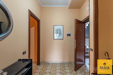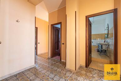 L'ingresso si apre, tramite porta blindata, su un disimpegno che distribuisce armoniosamente gli ambienti della casa. La cucina è comoda e abitabile, arricchita da una pratica veranda che aggiunge spazio e funzionalità. La zona notte è composta da tre ampie camere matrimoniali, ideali per accogliere una famiglia numerosa o per essere destinate a uso locativo. Una di queste camere offre l'accesso diretto a un balcone da cui si gode una splendida vista sul verde e sui monti, regalando una piacevole sensazione di apertura e tranquillità.