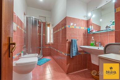 I due bagni dell'abitazione sono stati recentemente ristrutturati con gusto e sono entrambi dotati di doccia. Non mancano inoltre un comodo ripostiglio e, punto di forza dell'immobile, uno splendido terrazzo coperto di circa 30 mq: uno spazio esterno vivibile in ogni stagione, perfetto per momenti di relax o per accogliere amici e familiari.