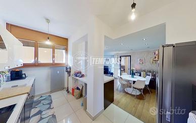 La zona notte si compone di due camere da letto, spaziose e ben illuminate, rifinite in parquet, che dona calore e raffinatezza agli ambienti. L'intero appartamento è stato oggetto di ristrutturazione completa, con particolare attenzione ai dettagli e al comfort abitativo: gli infissi in legno con doppio vetro garantiscono un buon isolamento termico e acustico, dotato in tapparelle elettriche in tutti i locali, mentre la presenza di un impianto di climatizzazione con pompa di calore assicura efficienza e benessere in ogni stagione.