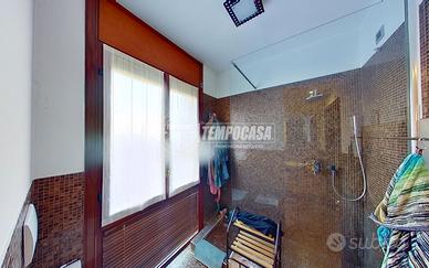 L'ingresso conduce a un luminoso soggiorno di ampie dimensioni, ideale per accogliere famiglia e amici, con accesso diretto allo sfogo esterno di circa 6 mq, perfetto per momenti di relax all'aperto. La cucina, a vista e ben disposta, risulta comoda e ben organizzata, con pavimentazione in ceramica, così come il bagno padronale. Dotato di doppi servizi rifiniti con gusto: il primo dotato di box doccia e rivestimenti in mosaico, il secondo con vasca idromassaggio, ideale per chi desidera un momento di relax.