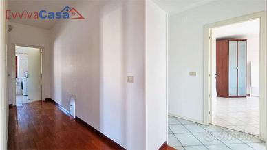 Suddivisa in: ingresso con guardaroba in armadio a muro, zona living con cucina a vista, disimpegno per zona notte con due bagni, ben quattro camere da letto e un ripostiglio finestrato, tutte stanze collegate al corridoio centrale.