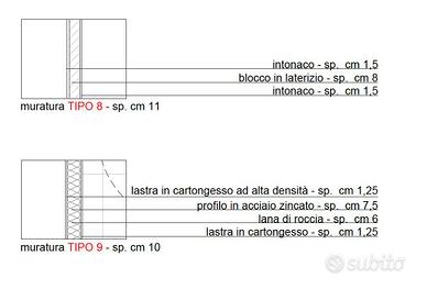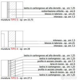 Caratteristiche: cappotto di 14cm, tipologia di muratura adatta ad ogni parete, fornitura/posa pannelli in stiferite tra le pareti divisori degli appartamenti, fortinura/posa porte tamburate lisce e laccate, porte scorrevoli in legno laccato bianco, serramenti pvc scorrevoli ove previsto, davanzali in travertino chiaro rapolano, serramenti pvc con prestazioni termico-acustico idonee, isolamento termico-acustico.