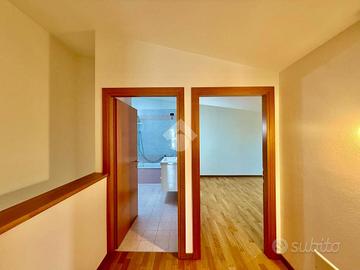 Al piano superiore la zona notte è gestita da un'ampio disimpegno da cui si accede alla generosa camera matrimoniale, e anche alle altre due stanze. Al piano troviamo anche il secondo bagno finestrato, questo con vasca.