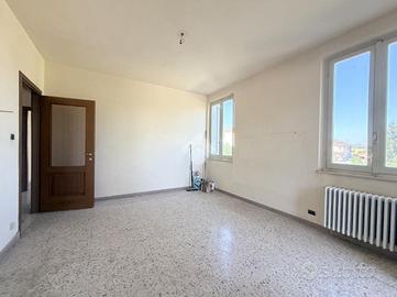 Proponiamo in vendita appartamento situato in una palazzina tranquilla di soli due piani con riscaldamento autonomo e basse spese di gestione. Il soggiorno è ampio e luminoso, con un angolo cottura e una porta finestra che conduce all'ampio terrazzo recentemente ristrutturato ideale per momenti di relax all'aperto. Troviamo tre camere da letto, due delle quali con balcone e una con una spaziosa cabina armadio. Il bagno necessita di ristrutturazione. Le finestre sono in legno con doppio vetro in buono stato. L'impianto di riscaldamento è in fase di ristrutturazione. Completa la proprietà una cantina e un box auto incluso nel prezzo. Situato a pochi minuti dal centro e comodissimo a tutti i servizi.