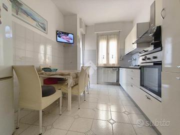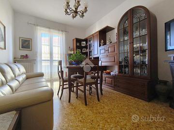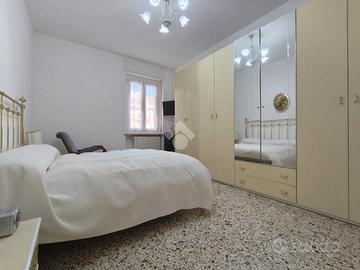 Acqui Terme. Alloggio sito in una delle vie principali della città di Acqui. L'appartamento, situato al quinto piano si compone di ampio ingresso, cucina abitabile con finestra che regala luminosià all'ambiente, sala con balcone, due camere da letto matrimoniali di cui una con accesso al balcone con vista aperta, ed un bagno dotato sia di doccia che di vasca. Tutti gli infissi dispongono di vetri doppi a taglio termico e zanzariere. Presente inoltre una cantina.