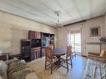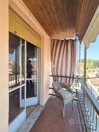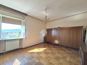 Acqui Terme. Alloggio posto in una zona comodissima data la vicinanza a tutti i principali servizi. L'appartamento è situato all'ultimo piano in un condominio tranquillo e con ascensore. Essendo un piano alto, caratteristica dell'immobile è la vista panoramica su Acqui. Come è possibile vedere dalla planimetria allegata alle foto si compone di ingresso su corridoio, cucina, salone luminoso con balcone e vista aperta, un bagno, due camere da letto di cui una con poggiolo. Completa la proprietà la cantina.