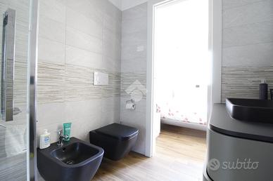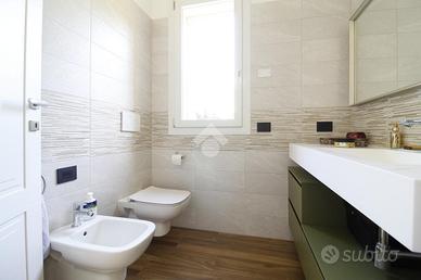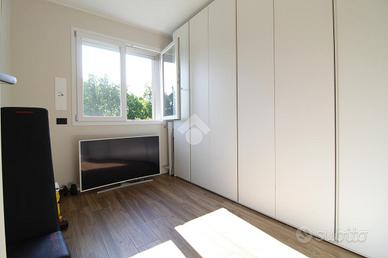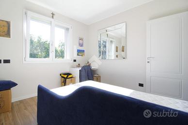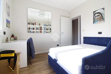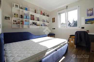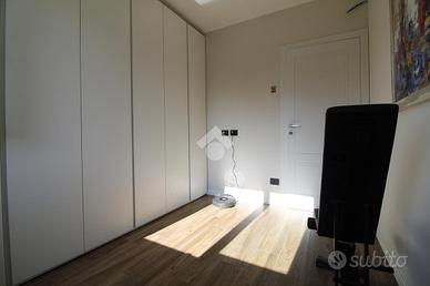 Il disimpegno collega la zona giorno alla zona notte, composta da due camerette, dalla camera matrimoniale con bagno en suite e cabina armadio, e dal secondo bagno. Ogni locale è dotato di tapparelle motorizzate.