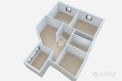 La disposizione interna comprende quattro locali ben distribuiti: cucina abitabile, soggiorno, tre camere da letto, un bagno e ripostiglio, ideale per adattarsi alle diverse esigenze abitative.