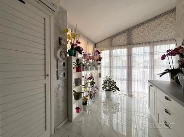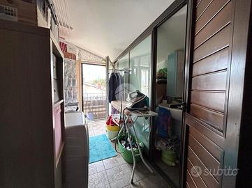 L'immobile è composto da ingresso su soggiorno con cucina a vista, bagno moderno con doccia, due camere da letto di cui una matrimoniale con accesso diretto alla zona lavanderia. Il solarium divide il soggiorno dalla zona notte, ideale come zona relax o studio. Presente anche un balconcino privato, perfetto per un momento all'aperto.