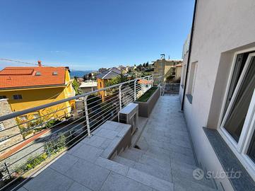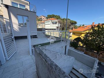 VIA BELVEDERE - ALBISSOLA MARINA (SV) In zona tranquilla , con una meravigliosa vista mare panoramica , proponiamo in vendita appartamento composto da quattro locali , sito in una palazzina di nuova costruzione del 2024. L'immobile si trova a meno di 600 metri dalle spiagge ed è così composto , ingresso indipendente tramite l'ampio terrazzo vivibile di oltre 60 mq , cucina abitabile , soggiorno , due camere da letto matrimoniali e bagno finestrato , quest'ultimo , differentemente dalle foto , verrà consegnato completamente ristrutturatto con la possibilità per il futuro acquirente di scegliere le rifiniture comprese nel prezzo. Le finiture interne ed esterno sono di pregio , il condominio esternamente è tutto isolato con cappotto termico ed è presente un'intercapedine che tiene distante qualsiasi tipologia di umidità e rumore. Sono presenti sul tetto pannelli solari per l'acqua sanitaria. Queste fantastiche rifiniture permettono alla seguente soluzione immobiliare di avere una classificazione energetica 'A'. Il riscaldamento è autonomo ad aria con pompe di calore caldo/freddo in tutte le stanze , fatto salvo per il bagno in cui troviamo un radiatore 'scaldasalviette' elettrico. Non sono presenti spese di gestione. Completa la proprietà un posto auto privato sito a meno di 200 metri dall'ingresso.