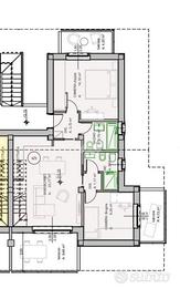 Il piccolo condominio di nuova costruzione ospiterà due scale. La prima accoglierà 4 appartamenti e, la seconda servita dall'ascensore 6. Ubicata in una splendida e comoda posizione, la costruzione offrirà molta privacy. Particolarmente esposto al sole, il piccolo condominio sorgerà al fondo di una via chiusa, ampia e ricca di parcheggi pubblici, regalando tranquillità senza togliere la comodità di essere in centro al paese. Giardini privati e terrazzi garantiranno gli sfoghi esterni di proprietà. L'appartamento, identificato con la sigla 'A5' è posizionato al primo ed ultimo piano e possiede una mansarda n.a. di 75 metri collegata dalla scala interna posata in soggiorno. Caratterizzato dalla tripla esposizione e dai 3 balconi, l'immobile avrà accesso dalla porta blindata sul disimpegno a vista sul soggiorno con angolo cottura. La grande porta finestra di 2,5 metri garantirà l'accesso al terrazzino che affaccia sul lato interno del piccolo condominio. Lo stesso disimpegno darà la possibilità di utilizzare la prima camera, quella più grande, arricchita dal balcone privato. Adiacente alla camera matrimoniale sarà presente il primo bagno finestrato, all'interno del quale sarà posata la vasca. Il secondo disimpegno servirà l'altra camera, anch'essa valorizzata dal suo balcone privato. A concludere il piano sarà il secondo bagno finestrato con la doccia incassata. Attraverso la scala interna sarà possibile arrivare al piano mansardato n.a. di 75 mettri illuminato dal Velux, che raggiunge i 3,5 metri di altezza. La catina di proprietà è ubicata al piano interrato. Sullo stesso livello saranno presenti le autorimesse acquistabili a parte, singole o doppie con area di manovra di circa 6 metri. Il piccolo fabbricato verrà costruito rispettando le recenti normative legate al risparmio energetico garantendo una classe 'A'. Il riscaldamento ed il raffrescamento saranno a pavimento gestiti dalle pompe di calore con i relativi pannelli sul tetto. Ogni appartamento verrà conseg...