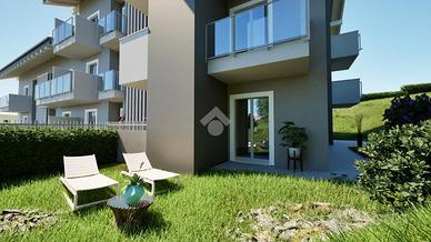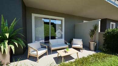 Il piccolo condominio di nuova costruzione ospiterà due scale. La prima accoglierà 4 appartamenti e, la seconda servita dall'ascensore 6. Ubicata in una splendida e comoda posizione, la costruzione offrirà molta privacy. Particolarmente esposto al sole, il piccolo condominio sorgerà al fondo di una via chiusa, ampia e ricca di parcheggi pubblici, regalando tranquillità senza togliere la comodità di essere in centro al paese. Giardini privati e terrazzi garantiranno gli sfoghi esterni di proprietà. L'appartamento, identificato con la sigla 'A4' è posizionato al piano terreno e possiede le tripla esposizione e, il giardino privato che copre i 3 lati del piccolo fabbricato sviluppa oltre 400 metri di dimensione. A precedere quest'ultimo sarà l'area terrazzata. L'ingresso principale avverrà attraverso la porta blindata, sul disimpegno di ingresso collegato al soggiorno con la cucina a vista. La grande porta finestra di 2,5 metri di larghezza garantirà l'accesso all'area esterna adibita a giardino di proprietà. Attraverso il disimpegno sarà possibile raggiungere il primo bagno, finestrato ed arricchito dalla vasca. Attiguo a quest'ultimo sarà posizionata la prima camera da letto che avrà accesso al giardino sulla facciata principale e su quella più corta. Il secondo disimpegno servirà l'altra camera da letto, angolare e circondata dal giardino privato, preceduto dall'area terrazzata. Adiacente a quest'ultima, oltre al secondo bagno che ospita la doccia, è presente la scala che consentirà di raggiungere il piano interrato. Lo stesso piano è raggiungibile anche attraverso l'ascensore. Accolti da un grande locale angolare di circa 35 metri, ideale come taverna, sono garantiti la luminosità e l'areazione grazie alle 2 bocche di lupo che ospita al suo interno. Al piano interrato saranno presenti le autorimesse acquistabili a parte, singole o doppie con area di manovra di circa 6 metri. Il piccolo fabbricato verrà costruito rispettando le recenti normative legate al risparm...