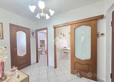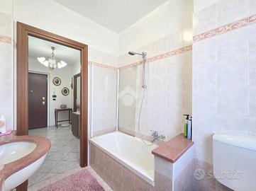 Il soggiorno è particolarmente luminoso grazie al doppio infisso che ospita al suo interno. Da quest'ultimo è possibile utilizzare il terrazzino che offre un piacevole panorama sul monte Musiné e sul grande parco condominiale. L'ingresso dalla porta brindata avviene sul disimpegno dal quale è possibile utilizzare ogni locale dell'appartamento. La cucina abitabile è accessibile attraverso la porta a scrigno che scorre esterna sul tramezzo. Lineare nelle sue pareti la cucina offre l'accesso al terrazzo, particolarmente sfruttabile grazie alla sua dimensione. Riparato dalla lunga vetrata, quest'ultimo ospita il ripostiglio/lavanderia all'interno del quale è stata inserita la caldaia a metano che gestisce il riscaldamento autonomo e l'acqua calda sanitaria, oltre alla presenza della lavatrice. Percorrendo l'ampio disimpegno è raggiungibile la prima camera matrimoniale, generosa negli spazi. Facilmente arredabile su entrambe le pareti, consente l'utilizzo del terrazzo che raggiunge la cucina abitabile. Accanto alla prima camera è presente il bagno finistrato che prende luce dalla terza esposizione, quella angolare. Al suo interno, oltre ai sanitari, trova spazio anche la vasca/doccia. La seconda camera matrimoniale, esattamente di fronte alla prima, possiede le stesse dimensioni. Tutto l'appartamento è stato oggetto di una completa ristrutturazione nel 2000 e, si presenta in perfetto stato di manutenzione. Posizionato al 2º piano rialzato, l'immobile è inserito nella splendida cornice del complesso residenziale di Piazza VIII Marzo. Arricchito dal parco condominiale e privo di barriere architettoniche, il complesso permette di raggiungere ogni servizio senza l'utilizzo dell'auto. A completare la proprietà dell'appartamento, che gode di una tripla esposizione, sono la cantina ed il garage compresi nel prezzo. Ideale per chi desidera vivere nel centro senza rinunciare alla tranquillità abitativa, l'immobile è ubicato in una posizione strategica anche per l'utilizzo di m...